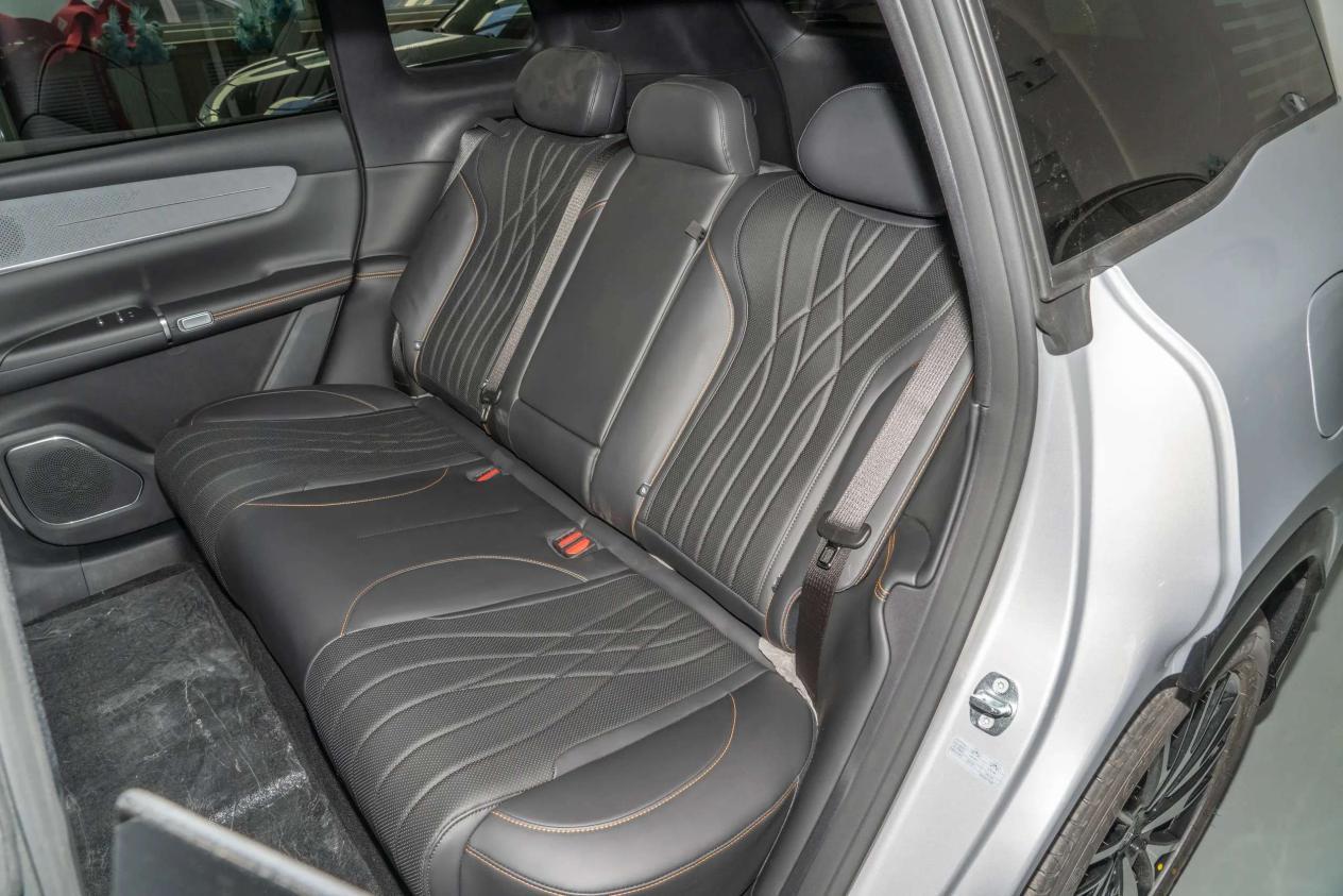 车侧标配了19/20英寸铝合金轮毂,配合流畅的裙线和腰线,将风阻降到0.27Cd。B/C柱的黑色涂装搭配后排隐私玻璃,使车身呈现出一种悬浮的视觉效果。尾部带扰流板和贯穿式红色尾灯,LOGO是可发光的,点亮后更具辨识度。