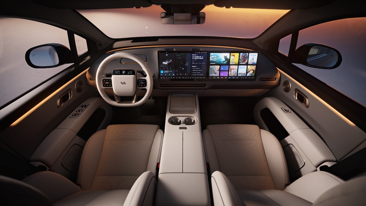 小米YU7则是双环抱式座舱设计,全面取消物理按键,传统仪表盘被投影在前挡风玻璃上的天际屏所替代,内置高通骁龙第三代骁龙8处理器内置双5G并行通讯网络和UWB钥匙,搭载全新一代超级小爱,通过端侧大模型的加持,实现五音区语音交互,另外也实现了与苹果生态的深度整合。舒适性配置上,冰箱电吸门和主副驾零重力座椅需要选装,同时入门版车型没有配备静谧座舱和智能调光天幕。