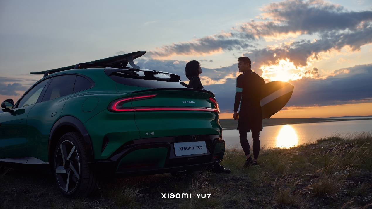 YU7车头的大灯与中网传承于SU7,水滴灯腔内部做了镂空处理贯穿到了蚌式机盖的风道,整车拥有10组贯穿式风道和19个风口,风阻系数0.245。小米对于自家首台SUV的外观最强调的是比例,1:3头身比,3x轮轴比,2.1x轮高比,1.25x宽高比,车身自带宽体,有着修长的前机舱长度,使得整车有着SUV少有的肌肉感和运动格调。线条以及结构呈现出来的视觉感受拥有着SUV和跑车结合的流畅和优雅,从视觉上而言,YU7运动感十足。