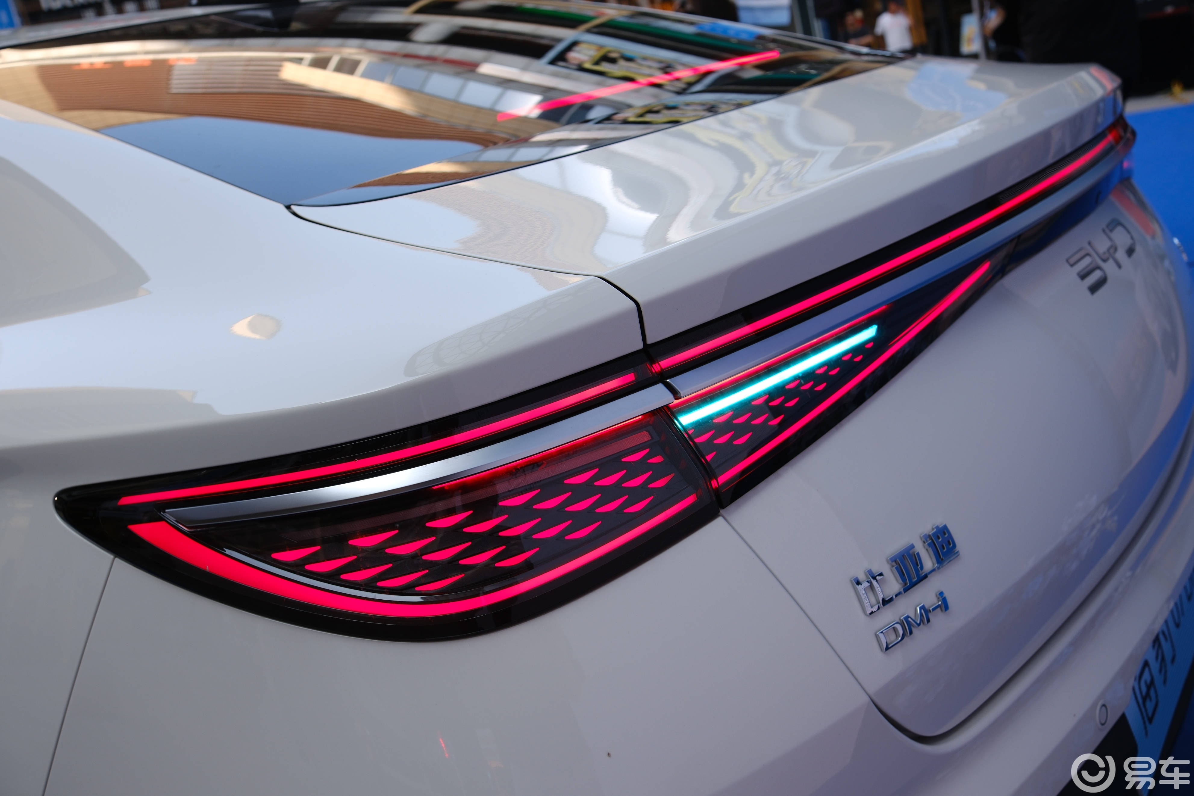 2026款海豹 07DM-i 完美传承海洋网家族设计语言,前脸采用 “驭风斩浪” 造型,三条横向饰条构成的 “海浪无界格栅” 呈 “八” 字形展开,搭配封闭式 EV 前脸,视觉上拉宽车身比例的同时彰显新能源身份。