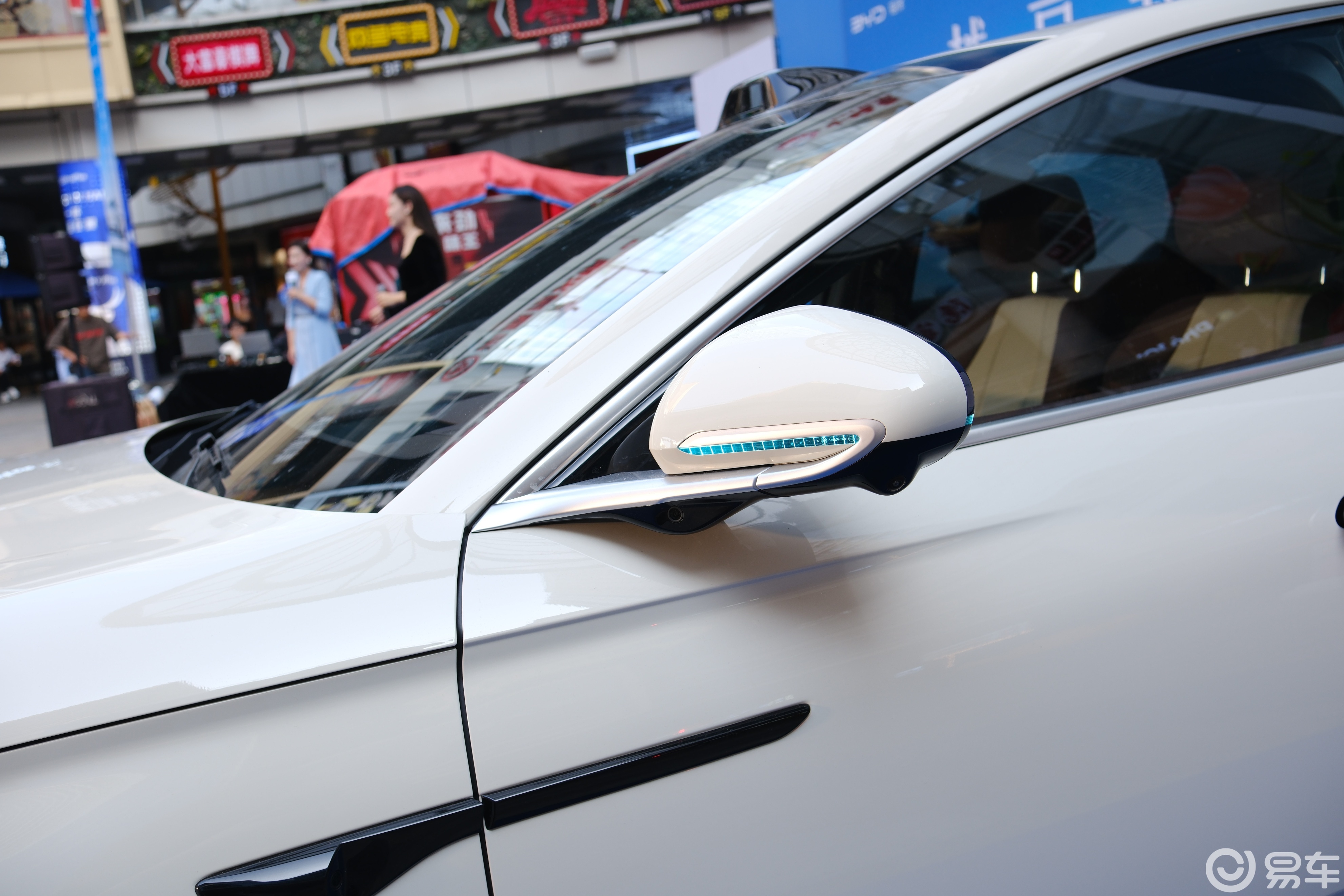 溜背式车顶线条从 B 柱顺滑延伸至车尾,与后备厢扰流板形成灵动夹角,运动与优雅优雅兼备。车身侧面配备隐藏式门把手,新增 18 英寸多辐式双色轮毂及辅助驾驶 “小蓝灯”,提升辨识度。