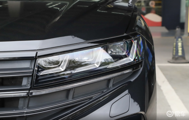 在外观设计方面,锐臻版延续了大众家族的设计语言,并配备了R-Line黑化运动套件,几乎所有的细节都进行了黑化处理,整体设计既有力感又不失时尚气息。车身长度为4913mm,轴距2899mm,整体营造出强大的气场。前脸设计较为复杂,上半部分采用贯穿式前格栅,与两侧大灯组融为一体,拉宽了前脸的横向视觉效果;下半部分则采用菱形网格设计,配合两侧导流槽,强化了前脸的运动气息。矩阵式LED大灯组和会发光的车标,在点亮后具有很高的辨识度。