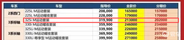 老款3系那更是甩卖,起售价从 31.99 万跌至21.3万,降幅超10万。