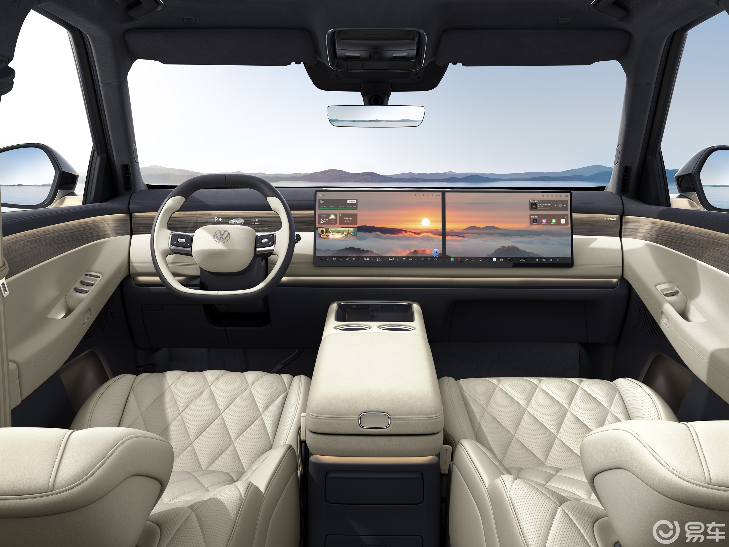 内饰上,新车采用的是和新势力类似的风格打造,新车中控台中间和副驾驶的一侧有连体悬浮式的大屏,科技感很足。新车还有两幅式的方向盘,中控台上采用的环抱效果,面板采用的是很有层次感的设计。新车采用的是2+2+2的座椅布局,第二排有两个独立座椅,它还有后排吸顶大屏。在动力方面,新车采用EA211发动机作为增程器,最大输出105千瓦。电机方面,单电机版搭载的是220千瓦电机,双电机版搭载的是前160千瓦和后220千瓦电机,它的CLTC纯电续航最大突破了400km。