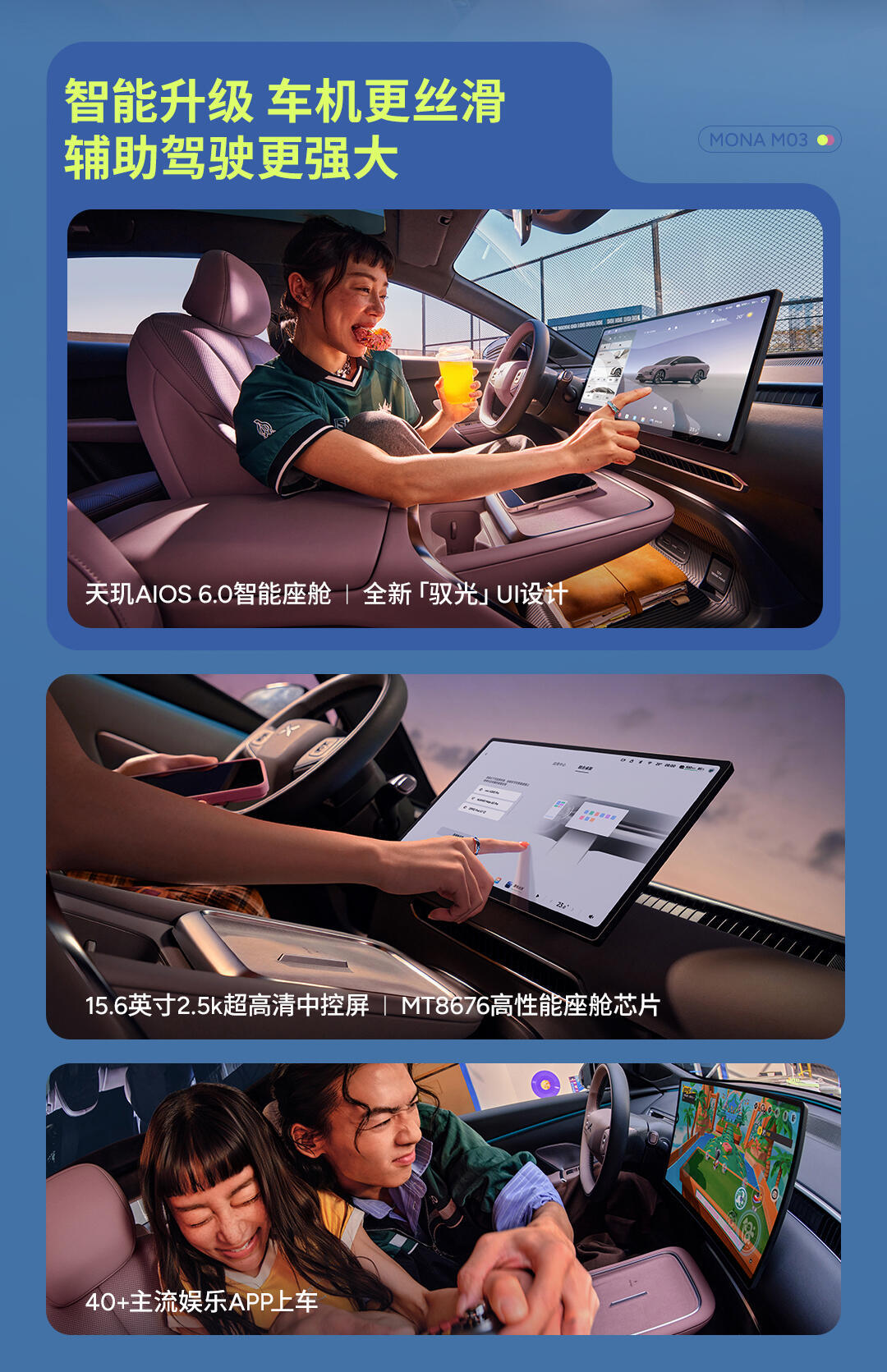 如果说精致设计和越级配置是2026款MONA M03的“肉身”,那么智能驾驶与智能座舱,就是它的“灵魂”。