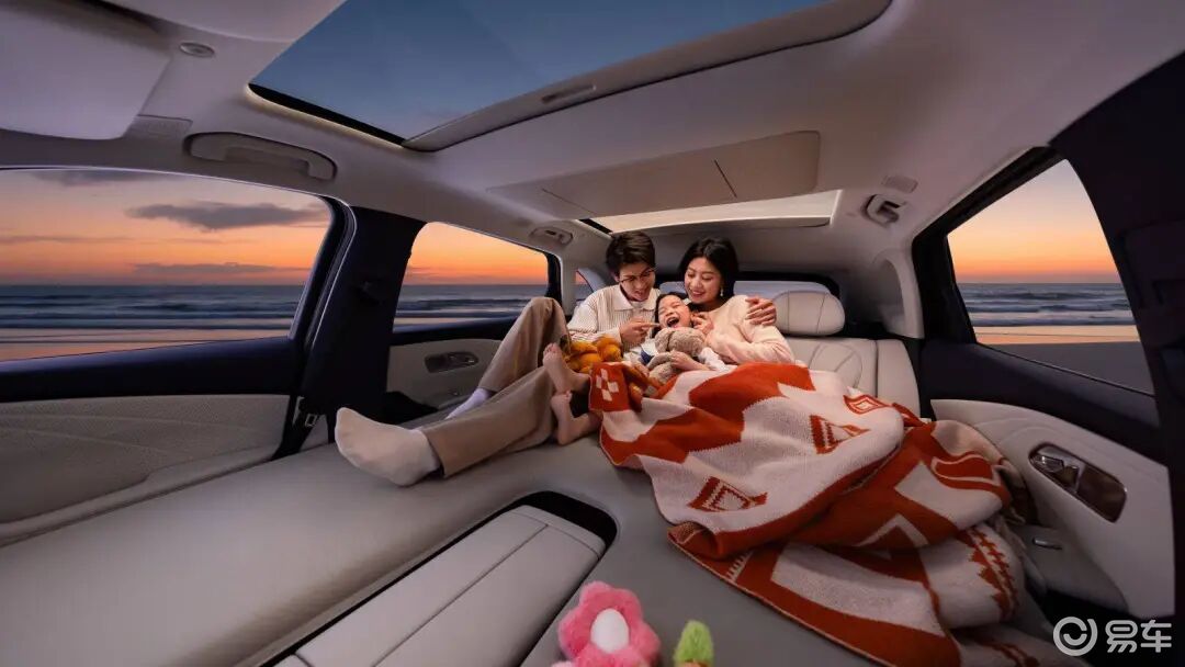储物与装载能力更是贴合家庭需求:常规后备厢容积573L,满足日常购物、通勤;后排座椅完全放倒后,容积拓展至1597L,形成超1.8米纯平空间,搭配前后排双大床模式,户外露营可直接躺平休息;全车还布局38处储物空间,小物件收纳井井有条。