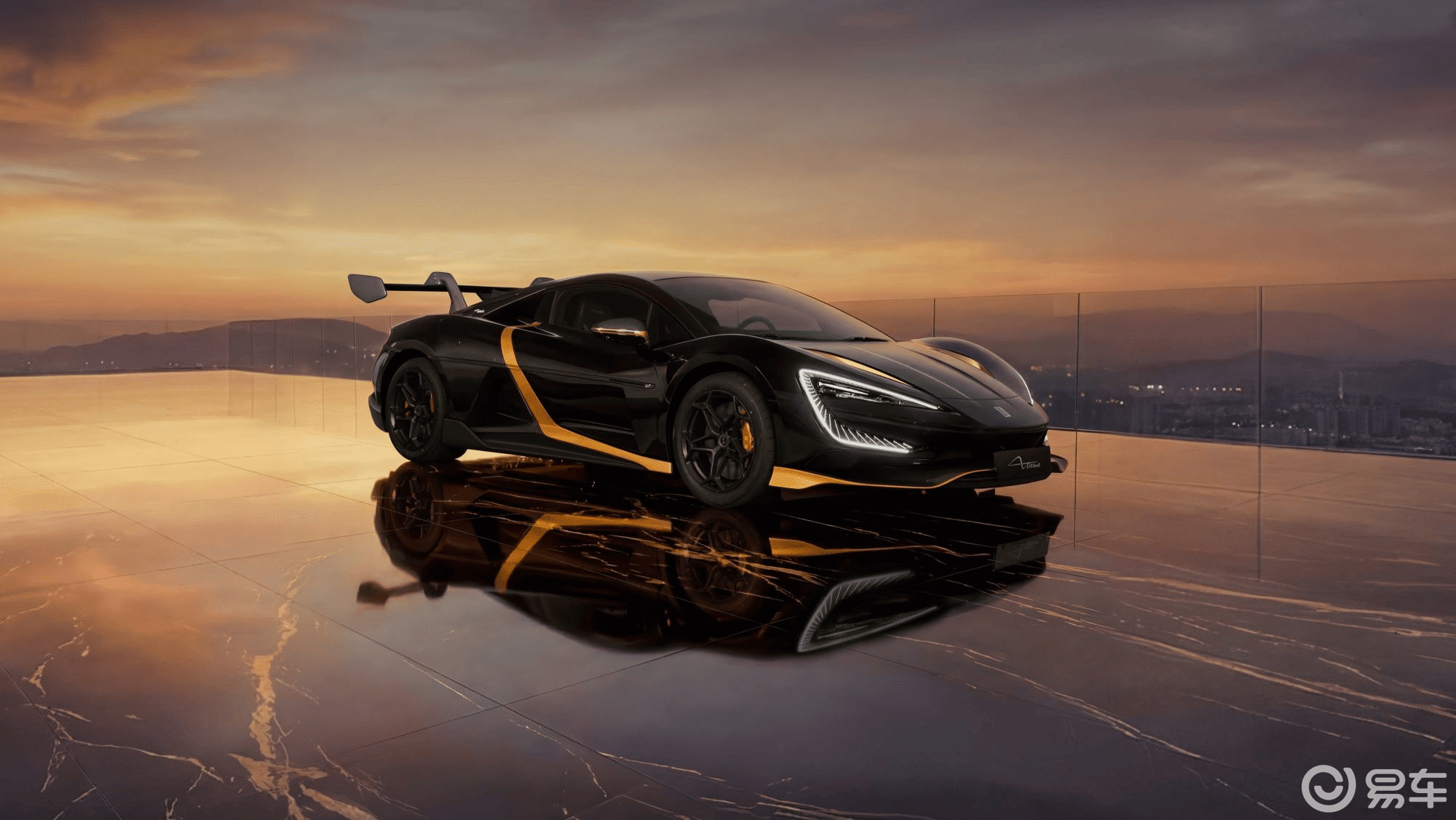 微米级超细金粉融入漆面,多层清漆锁固,不同光线下,车身会完美复刻朝阳穿透云层的流光溢彩。哑光金部分更是用上了中国传统非遗大漆打磨工艺——不是元素堆砌,是把东方温润质感刻进每一寸型面。全球限量30台,每一台都是独一无二的整车定制。这不是在卖车,这是仰望送给全球30位顶尖藏家的艺术品。