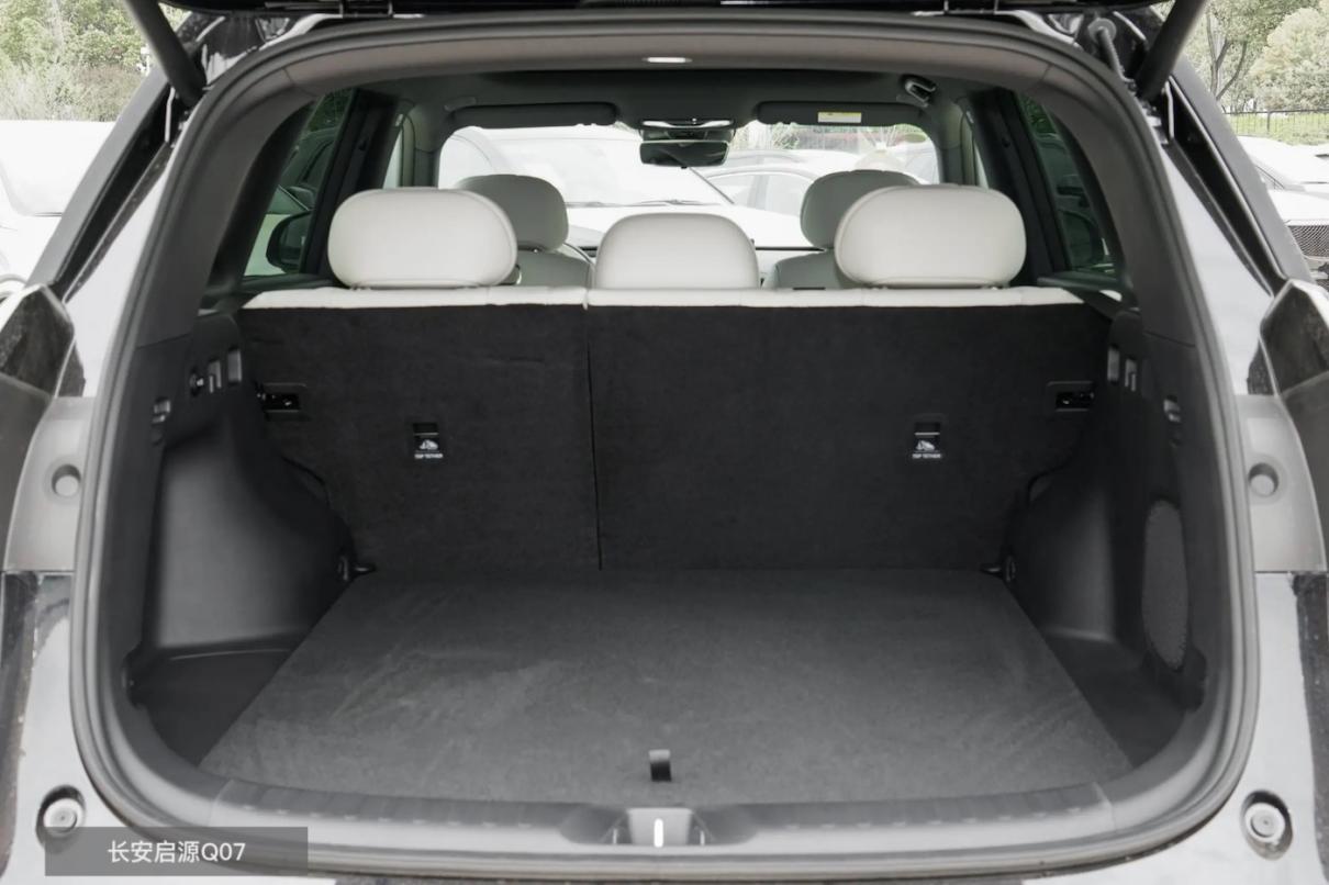 长安启源Q07则有763L标准容积并带一定下沉设计,也能实现分层放置,放倒二排后,最大容积可达1759L。尽管说超大号后备厢不是经常能装满,但在乘坐灵活性稍逊色的情况下,储物倒是可以替它稍稍扳回一城。