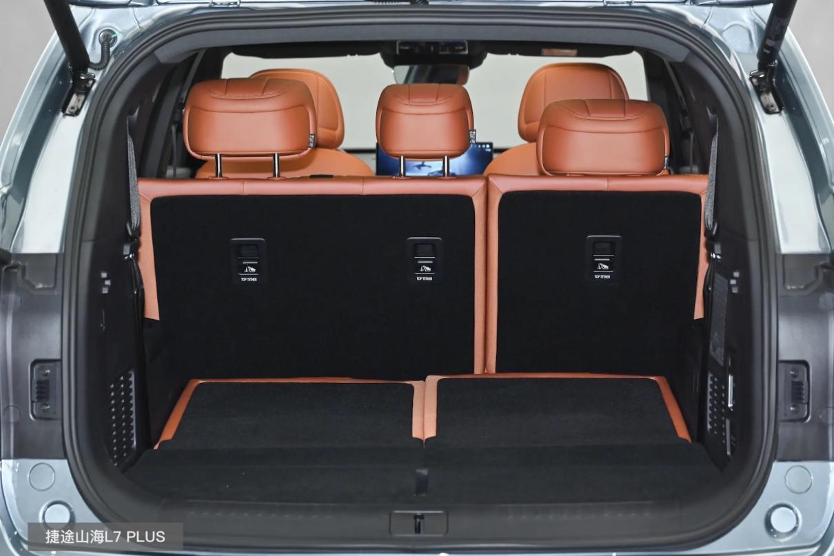 储物方面,捷途山海L7 PLUS在五座状态下有658L标准容积,且带有一个74L下沉储物,很适合满员时的扩展储物或是日常进行分区分层储物,省去不常用物件搬来搬去的繁琐;而二三排放倒后,其最大容积则为1708L,多功能储物与搬运上,都完全足够了。