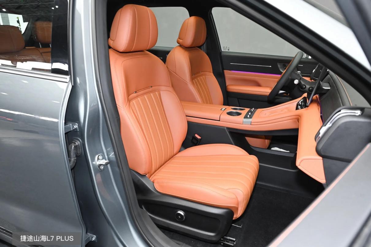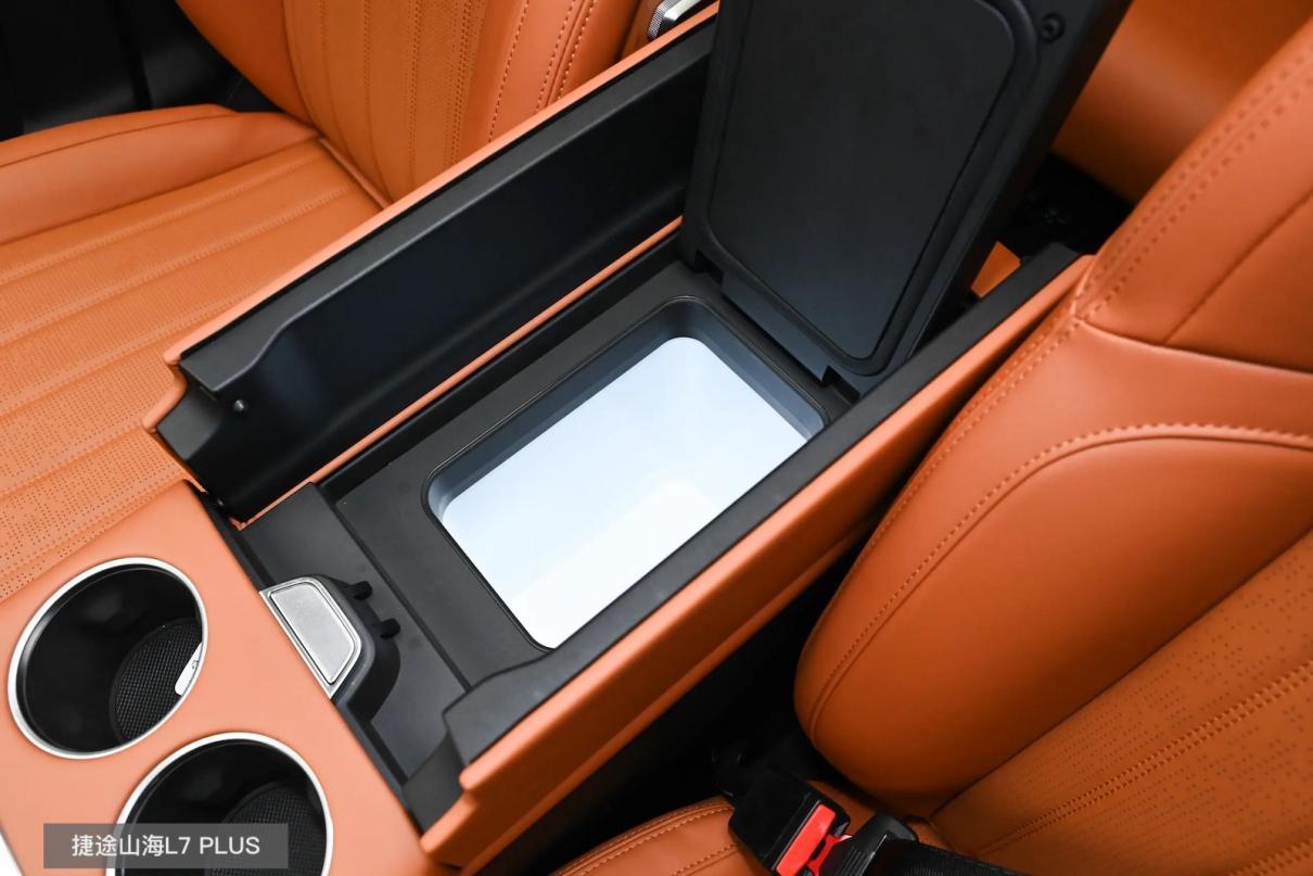 在乘坐舒适方面,两台车都已在前排提供加热/通风/按摩,并支持二排加热、三排靠背调节以及全车电动记忆;同时,包括空气质量监测、前排隔音玻璃等配置也都有。其中,捷途山海L7 PLUS的优势在于有即热式饮水机、6.4L扶手冷暖箱与后备厢20L智能冰柜(5座版),加上它还得到了中汽研5A健康座舱认证,一家三代出行中,不论老人还是小孩,坐着都会更安心些。