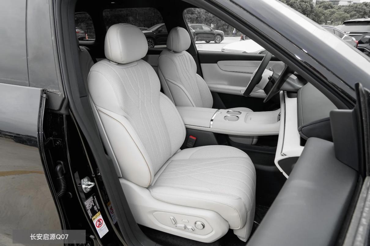 长安启源Q07的优势则在于提供了二排通风、副驾带有腿托,并多出了后排隐私玻璃,尽管在功能与健康环保上没有像捷途山海L7 PLUS那么全面,或者说缺少7座会让全家出行多些人员限制,但小家庭有这样的规格其实已经没什么好挑剔的了。