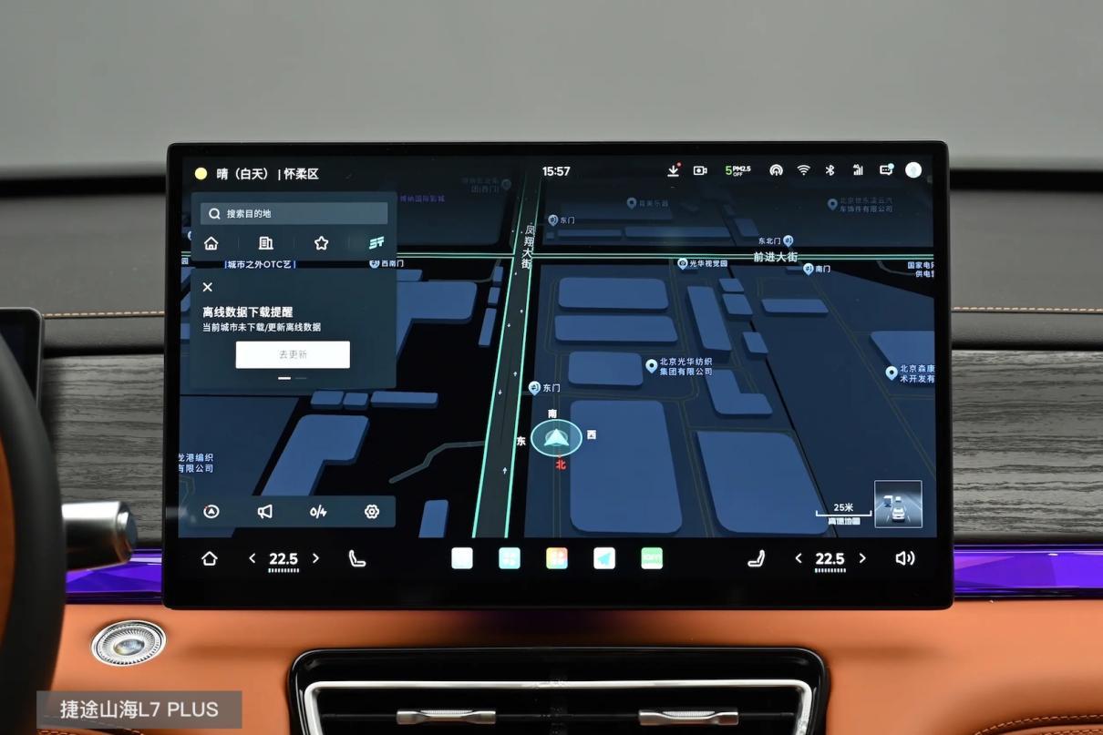 接下来看智能,两台车都有大号屏幕与语音大模型支持,并实现了四区域语音交互。其中,捷途山海L7 PLUS带有15.6英寸向日葵屏、保留了CarPlay/HiCar手机互联,应该说交互方式上够丰富,而且向日葵屏还能根据操作者所在区域进行左右各10°调节,无论观看还是操作其实会比较直观,而且TOUR OS 3.0带有灵动岛与副驾负一屏,功能切换的便捷性与多位置的娱乐性都很不错。