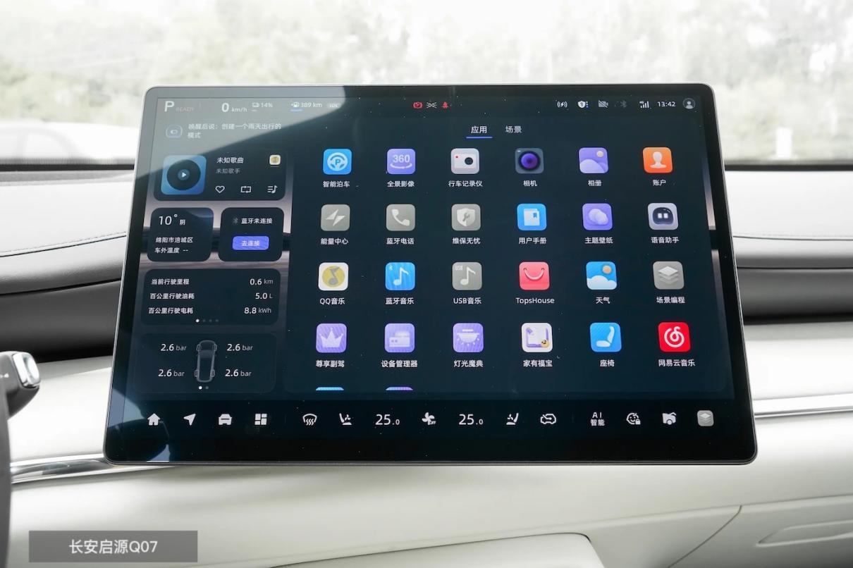 长安启源Q07也有15.4英寸触控屏,并用AR-HUD取代了仪表盘,尽管不支持手机互联,但像人脸识别这些功能还是可以优化用机便捷的,尽管没有灵动岛这些小心思,但生态融合得还是比较好,娱乐方式上同样丰富有趣。