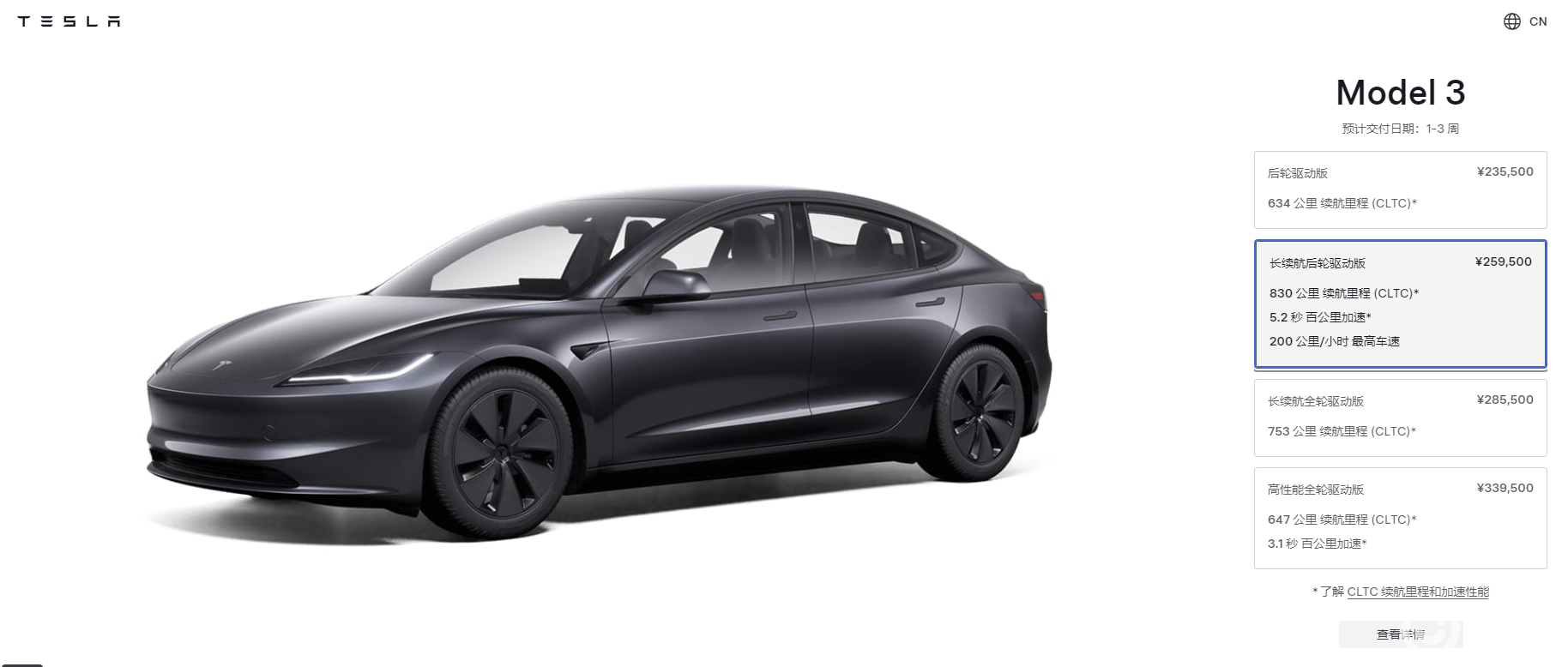 而目前Model 3的起步价依然为23.55万元,其余两个高端版本——长续航全轮驱动版和高性能全轮驱动版均采用双电机配置,起售价分别为28.55万元和33.95万元,价格同样保持不变。