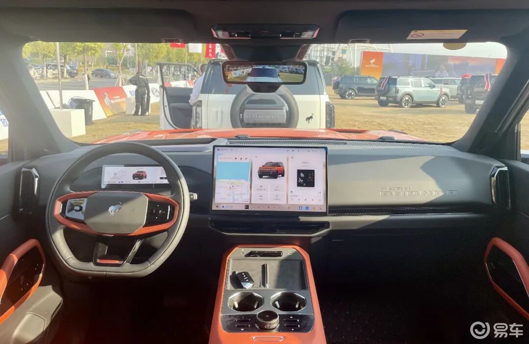 进入车内,智趣烈马的座舱设计风格简约、硬派,并提供赤沙橙、密林绿等四款配色可选。新车以2.5K高清15.6英寸Mini-LED中控屏搭配实体旋钮,兼顾了科技感与操作便捷性。此外,其座椅牛皮面料则选自南美洲优质牧场,触感细腻、缝线工艺精致,尽显品质感。