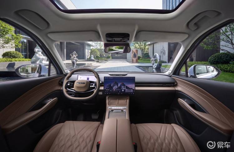 内饰方面,新车采用环抱式座舱设计,琥珀棕内饰色,大面积软包材质,顶配车型配备可左右滑动的15.6英寸悬浮式中控屏,全系标配高通骁龙8155芯片,支持HiCar、Carplay、Carlink手机互联及远程控制,车内还配备50W无线充电面板和256色音律氛围灯。