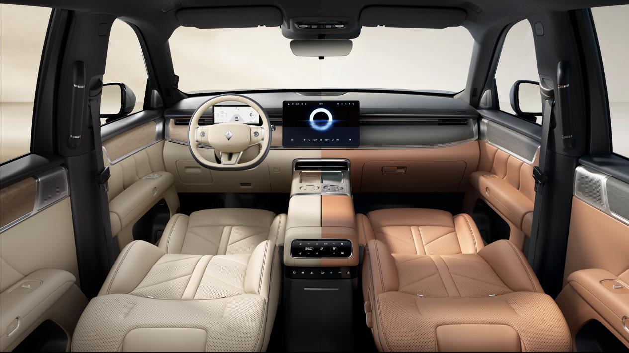 内饰提供象牙米、檀香棕两种配色方案,以冰玉纹缝线、温雅竹韵雕饰、鎏金纹饰条等细节营造东方气韵与现代科技融合的座舱体验,进一步对标中高端家庭用户的审美升级。